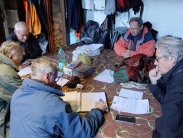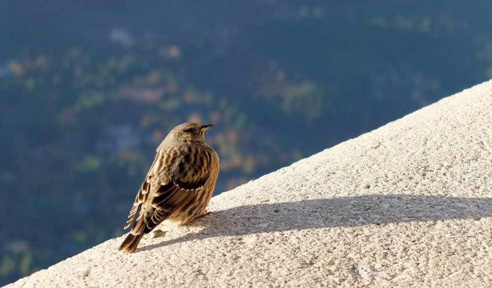 Il est 11 heures passées, l’attente de l’hélicoptère est agréable en la compagnie de notre accenteur alpin de retour pour hiverner chez nous ! Pour le moment il est venu en éclaireur, ses camarades le rejoindront vite !