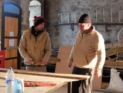 Quelques menus travaux pour les bénévoles : entretien, coupe de bois, rangement de l’atelier, préparations pour la pose de l’armoire métallique dans la cave.