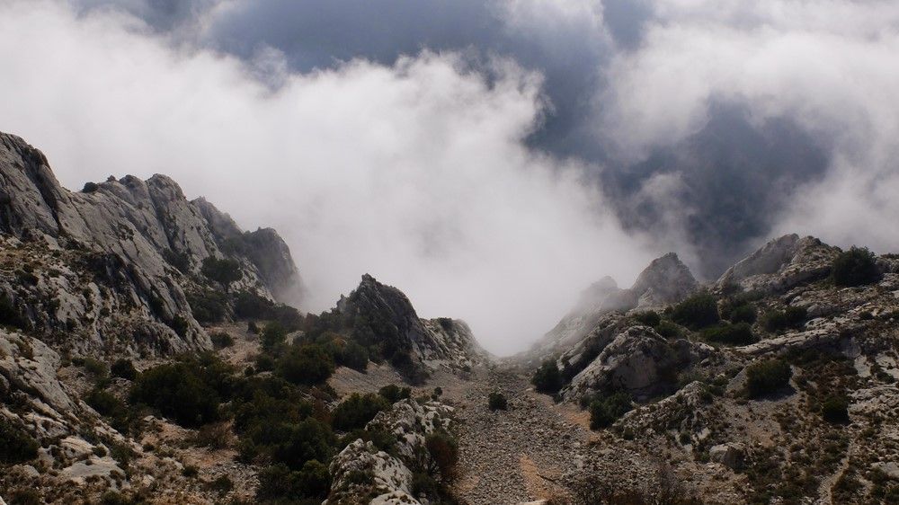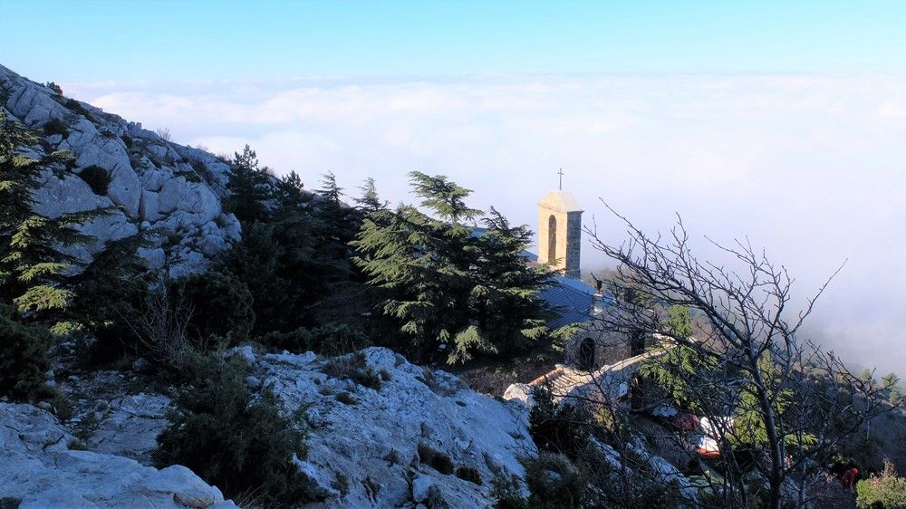 Merveilleuse ascension dans la brume par le sud, Sainte-Victoire émerge des nuages à partir du Pas de l’Escalette.