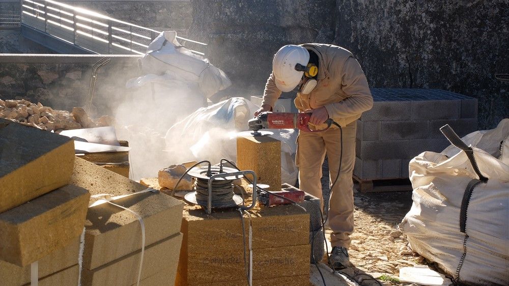 Les employés de l’entreprise Sele sont déjà là. Boudjemaa, maçon, a remplacé Nicolas appelé sur un autre chantier. La première rotation dépose Franck, assistant au sol et Hafedh, chef d’équipe.